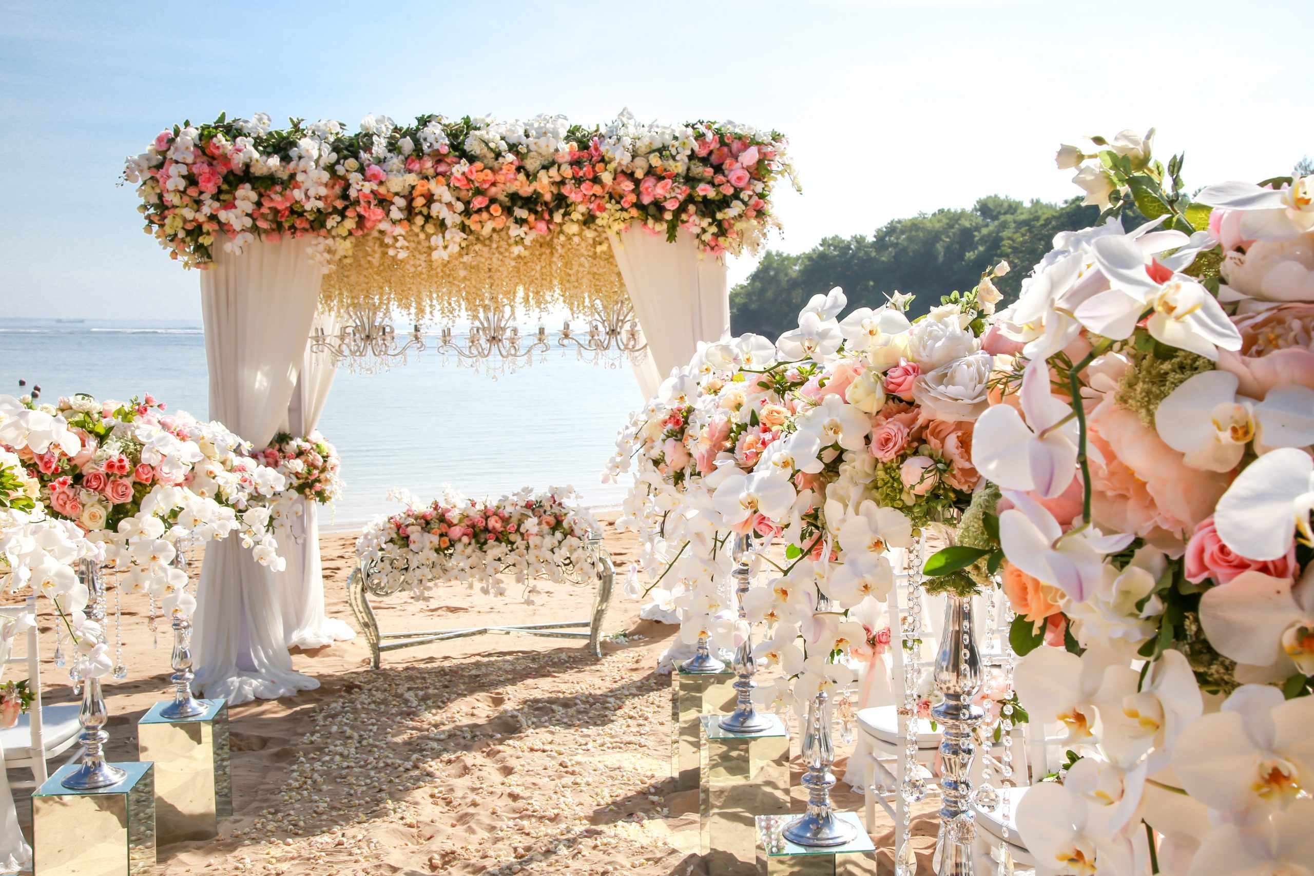 We offer 5 different collections for our wedding package. They include vases, gazebo draping, candles, floral centerpieces, pillars and much more. Choose what’s best for you.